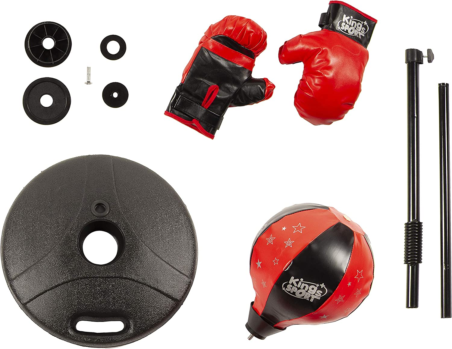 • Height Adjustable Punching Ball Stand: This punching bag with stand can be adjusted between 31” to 47”, which can be adjusted by personal preference