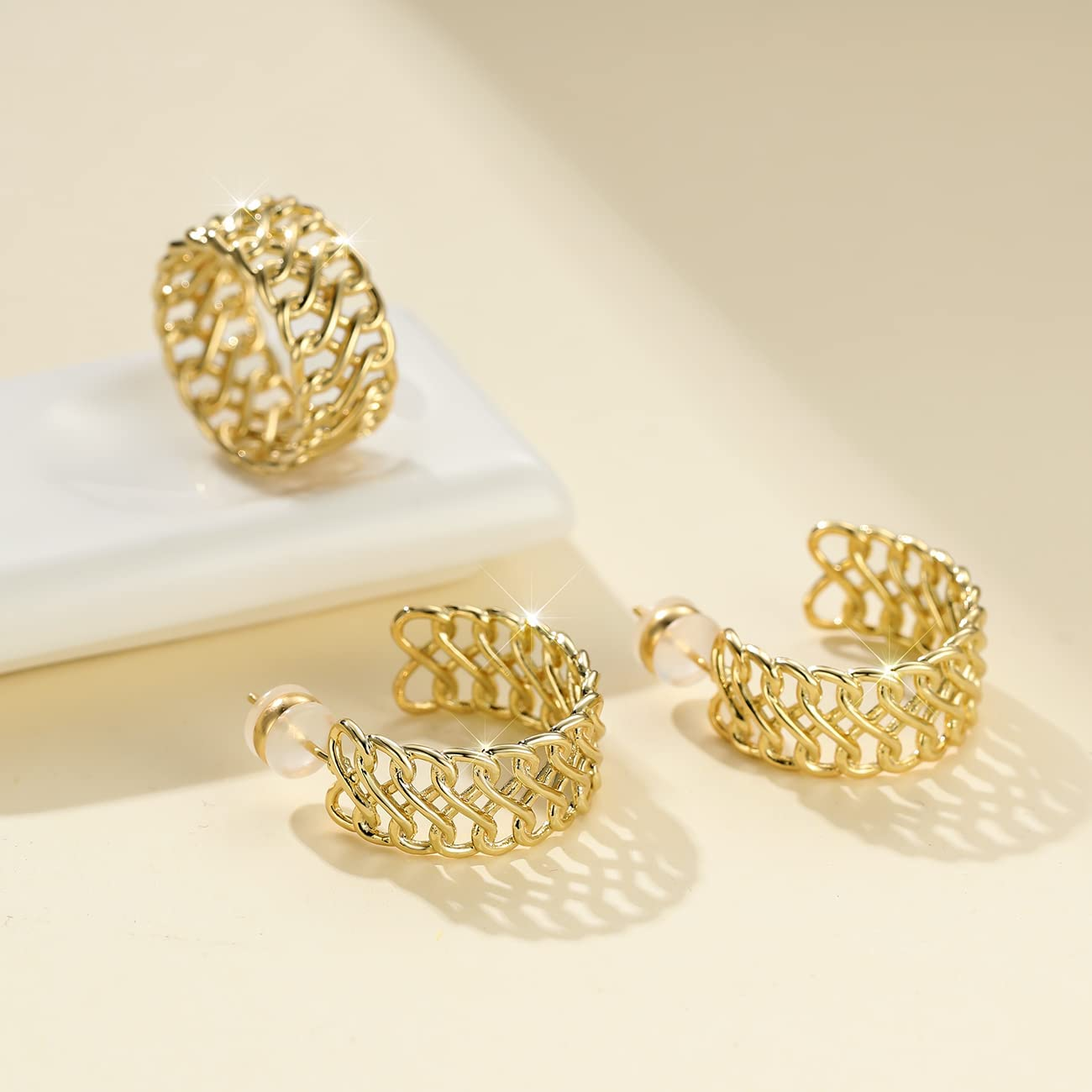 Tsnamer Women's Rough Gold Hoop Earrings 14K Real Gold Plated 925 Sterling Silver Column Braided Spiral Earrings Women