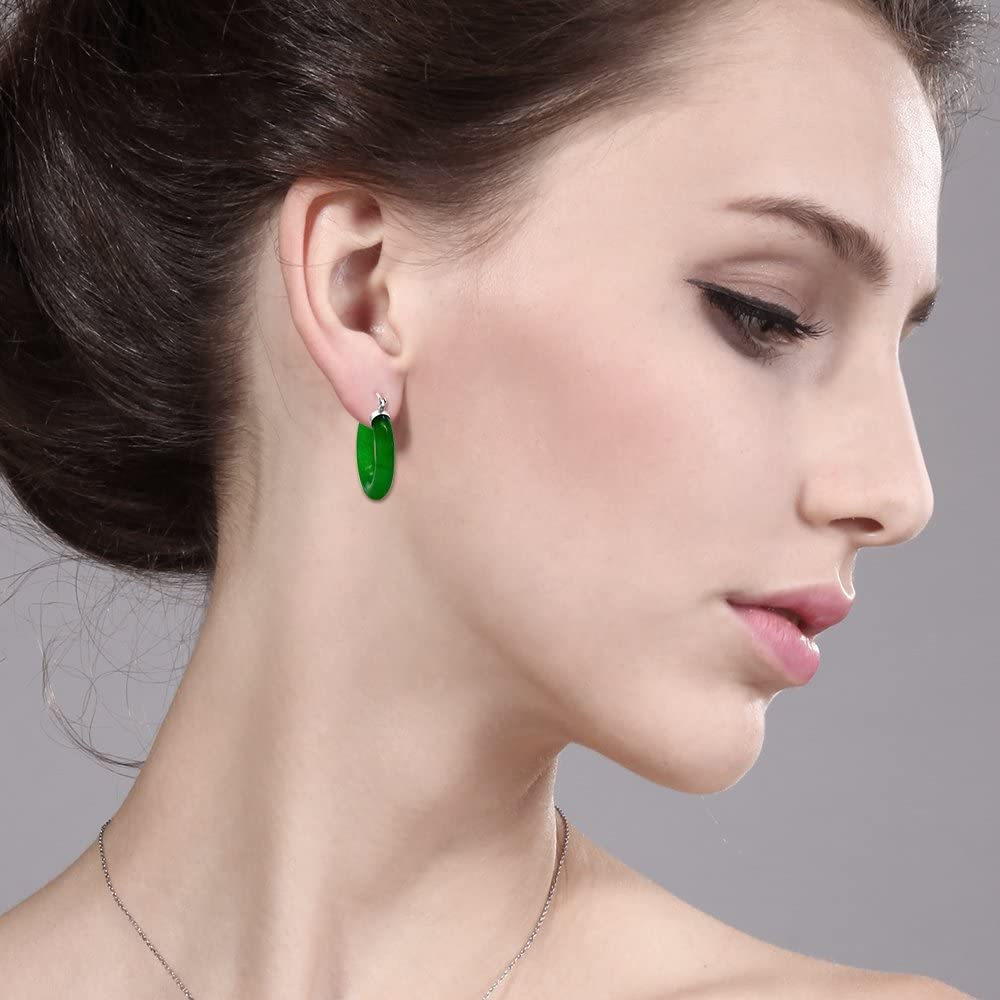 Vivid Green 925 Sterling Silver Solid Vivid Green 925 Sterling Silver Solid Jade Earrings 1.27cm